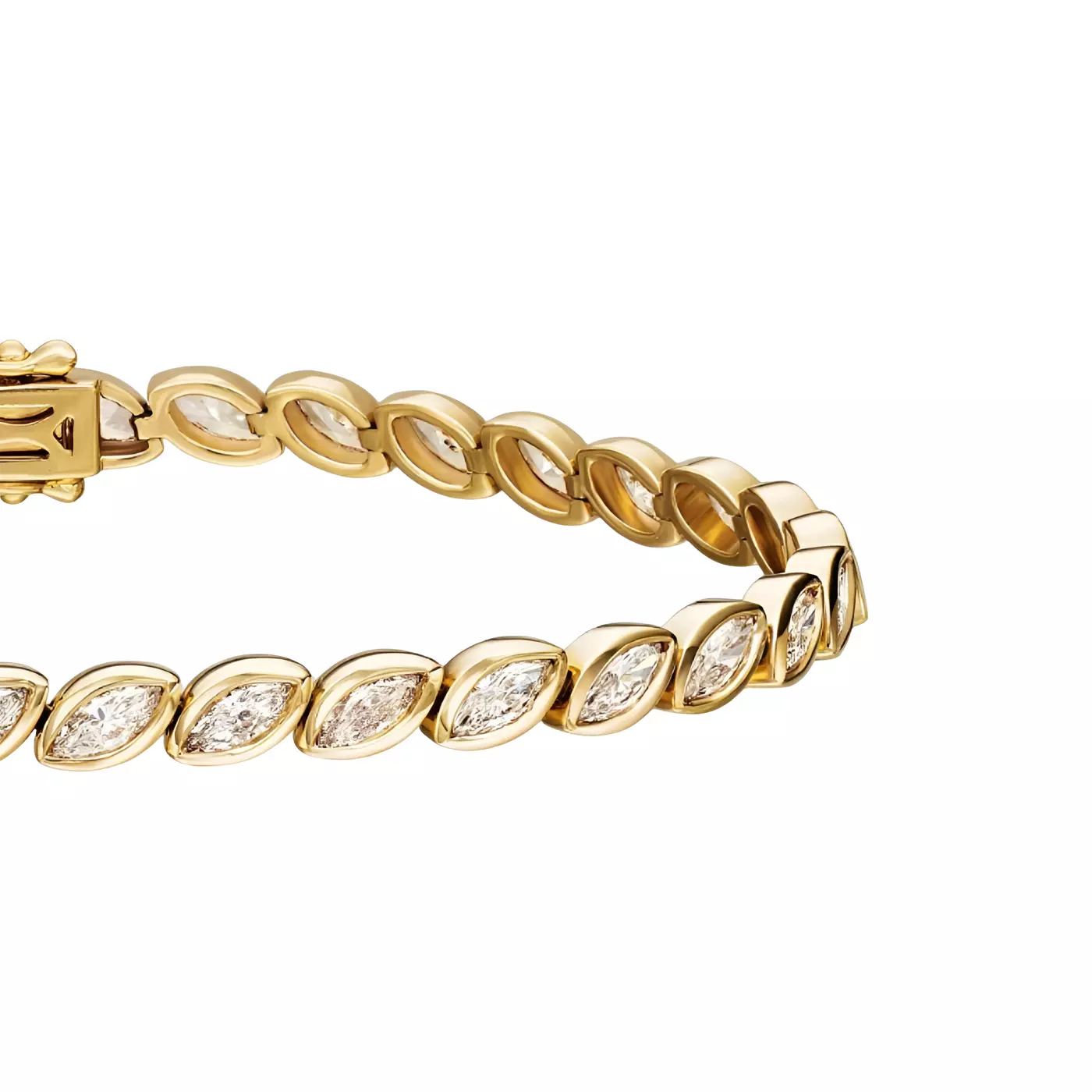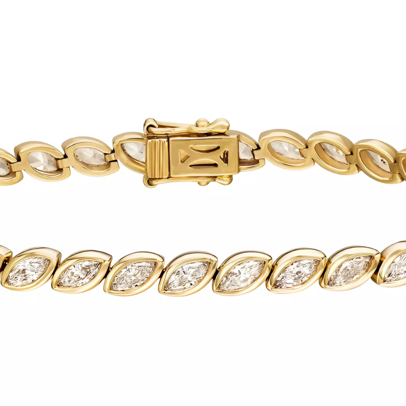 Marquise lab diamonds set at an angle in sleek bezel settings create a striking bracelet, blending modern design with timeless elegance.