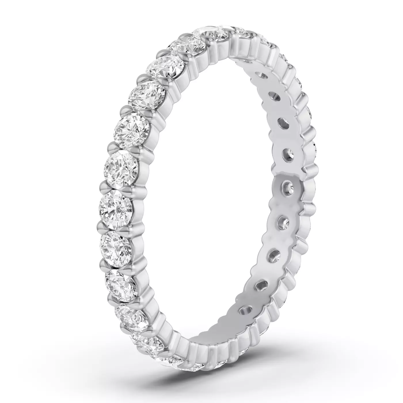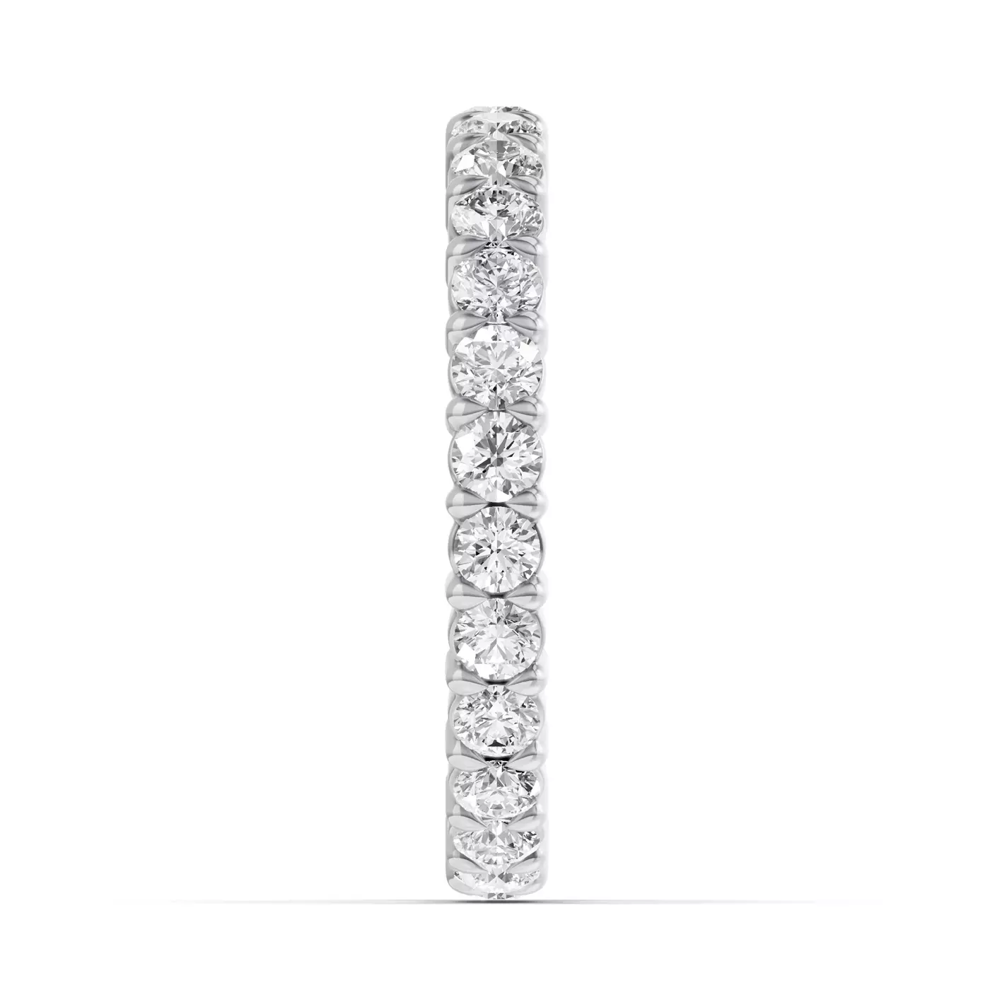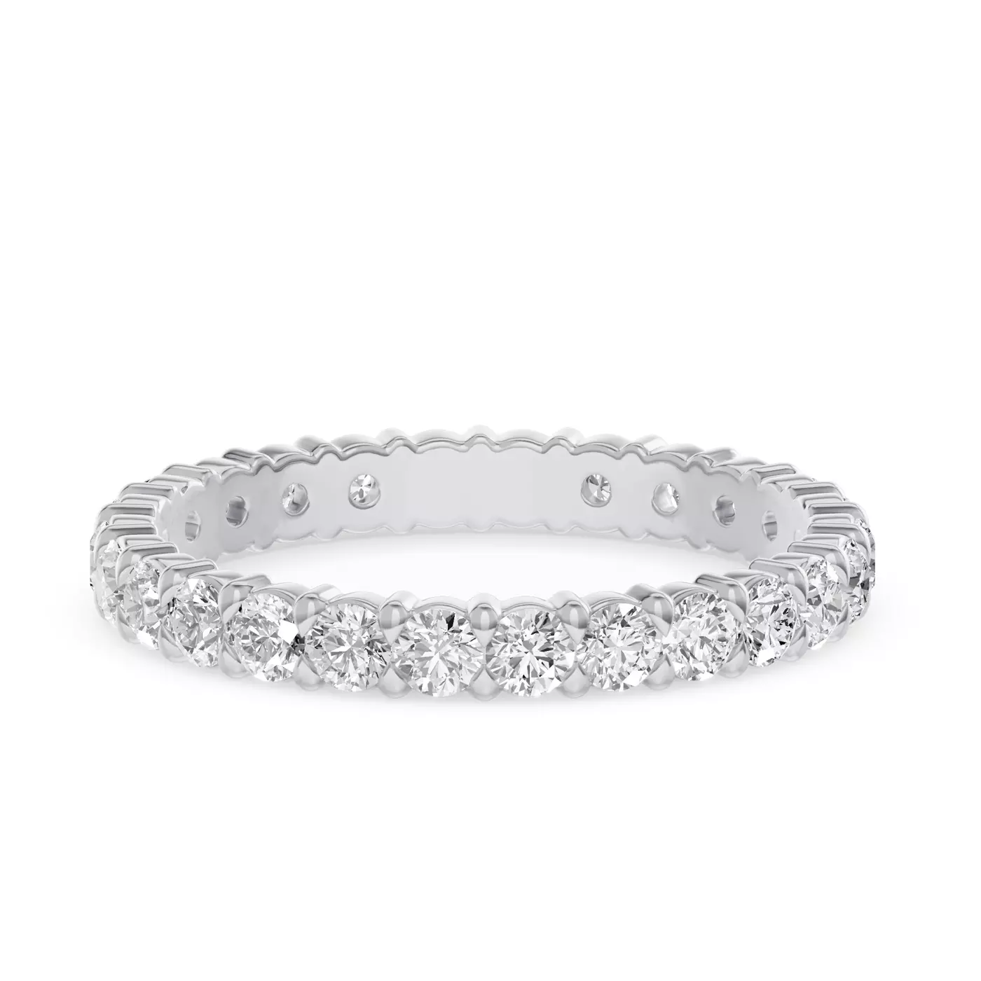 Regular cleaning will keep your eternity band sparkling. We recommend professional inspection every 6-12 months to ensure all stones remain secure.