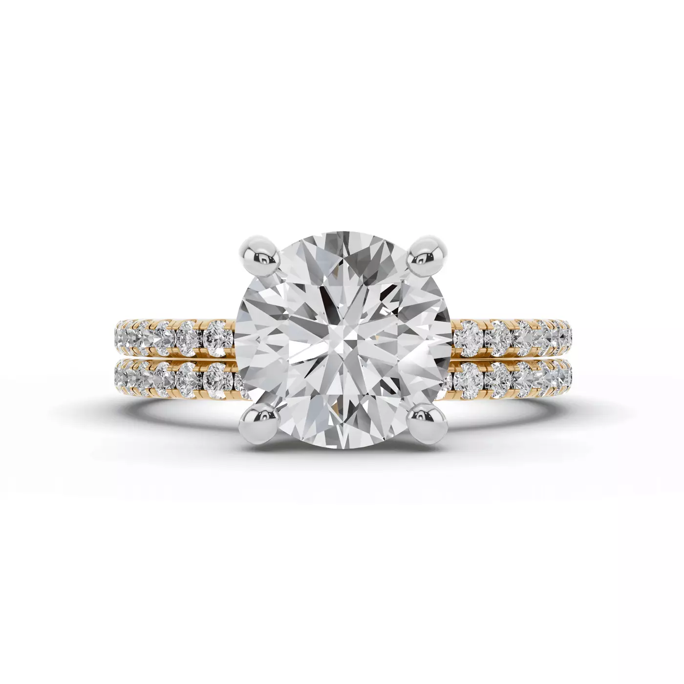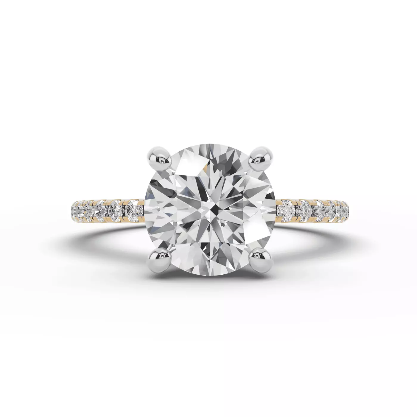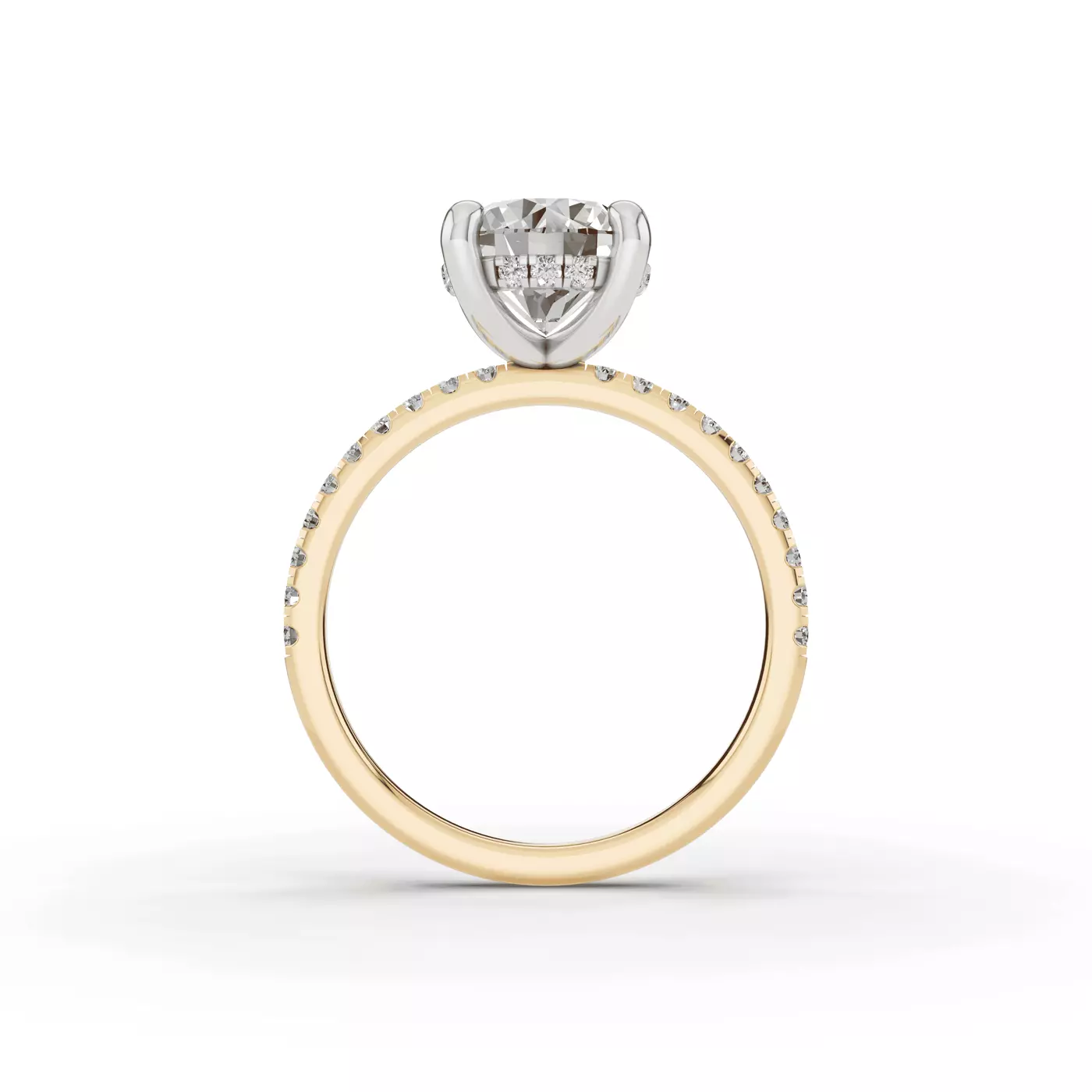 Signature Hearts & Arrows pavé lab diamonds ascend the band with bold sparkle, drawing the eye to a center stone nestled in a hidden halo basket. Precision cutting enhances brilliance at every angle.